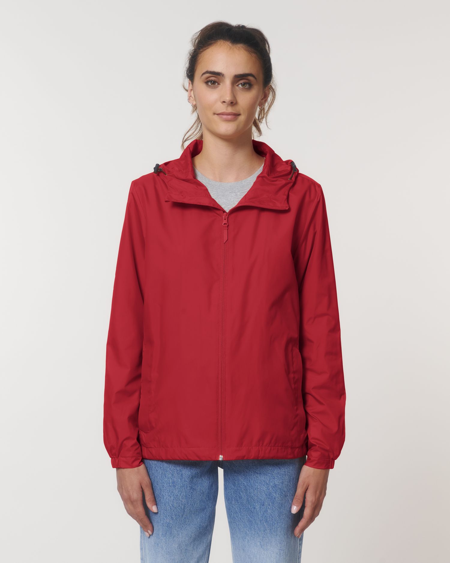 - Abertura de la capucha y bajo ajustables con topes de plástico y cordón elástico